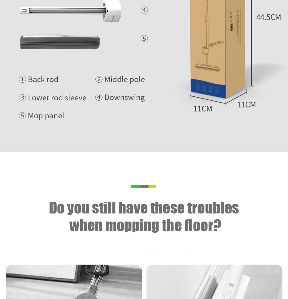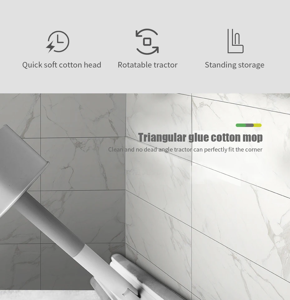 5. 180° ROTATABLE MOP HEAD: easy to shuttle through the corners of the wall, easy to clean without dead ends