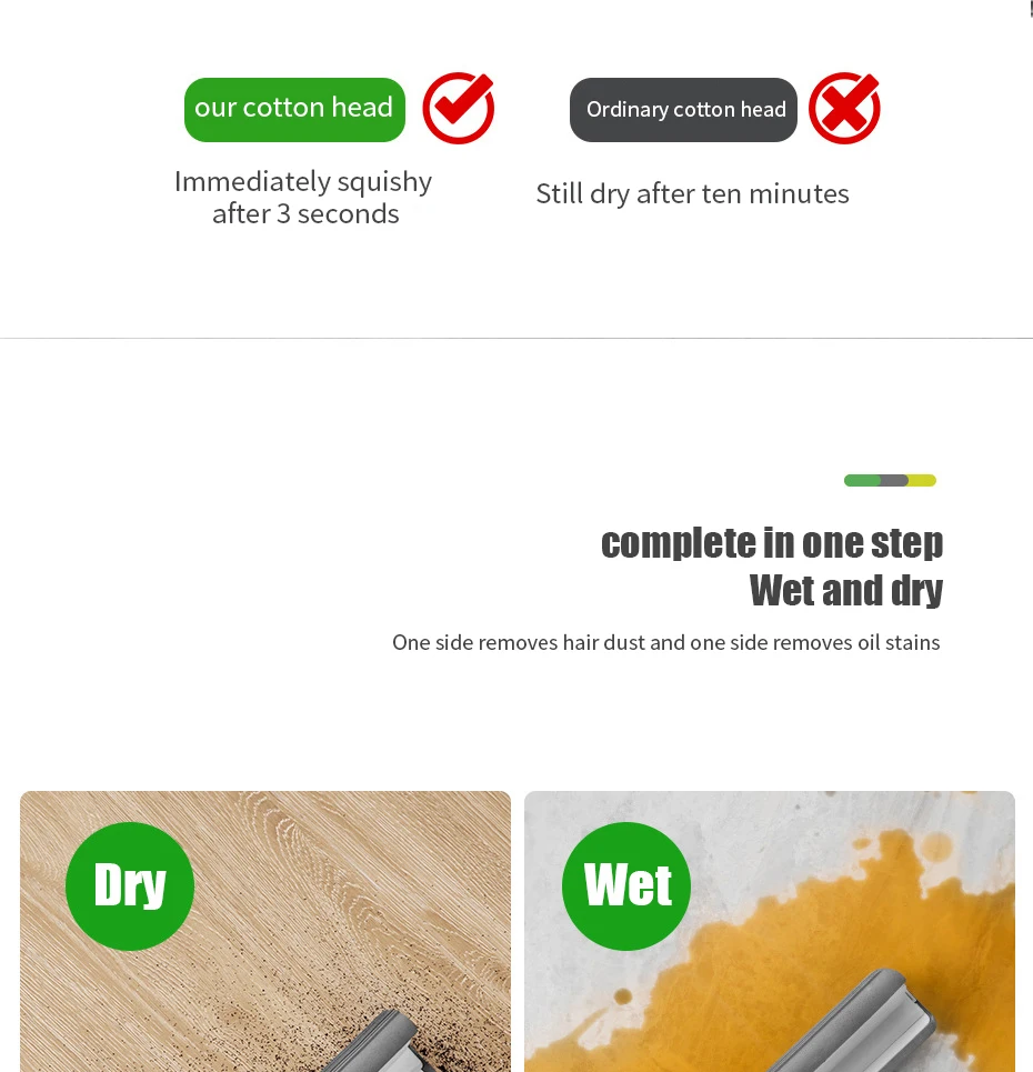 3. DOUBLE-SIDED DESIGN: can be used dry or wet, one side removes hair dust, and the other side removes oil stains