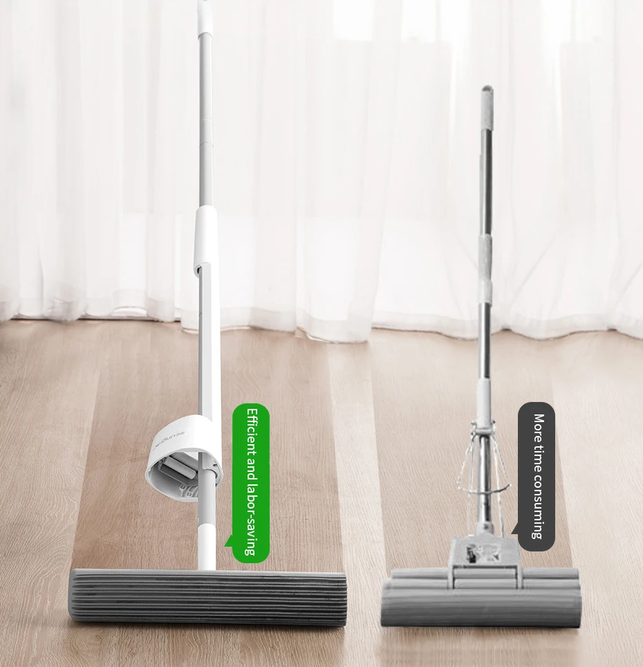 Sponge Mops for Floor Cleaning, Squeeze Sponge Mop with 130cm Extendable Telescopic Handle, Super Absorbent Sponge Heads