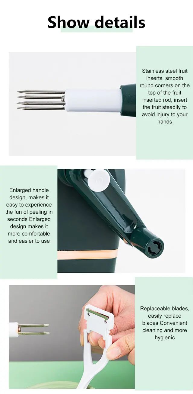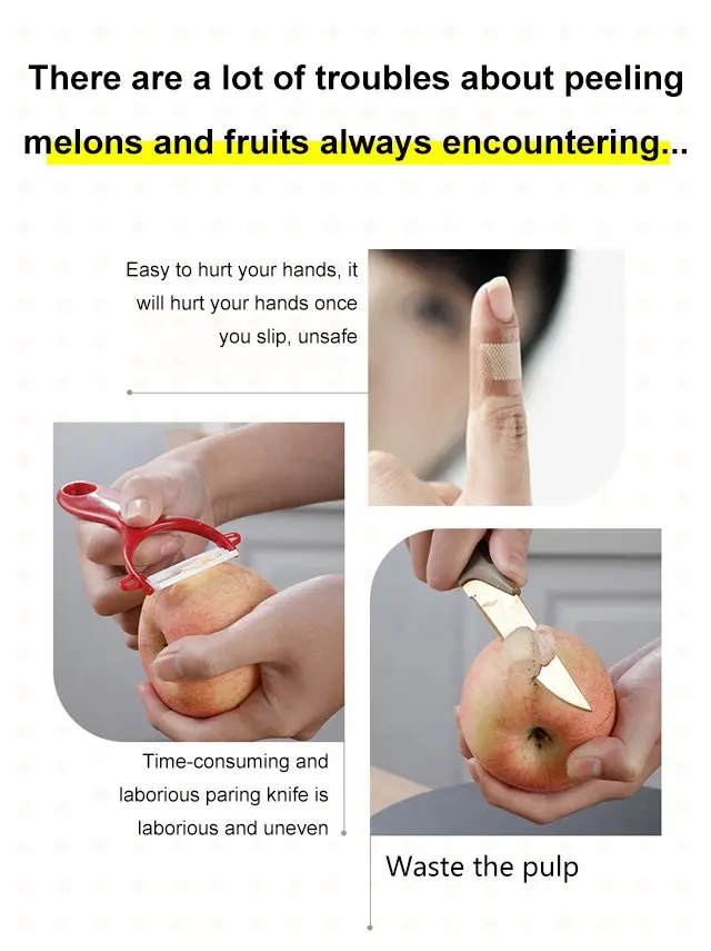 1. Round with the rotating peeling fruit, so fruit skin is thin, does not take a lot of flesh, safe and efficient peeling.