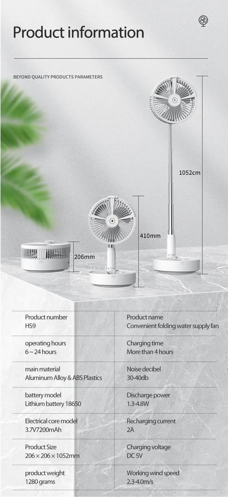 1. Folding fan: Upgraded HS9 shaking head remote control folding fan