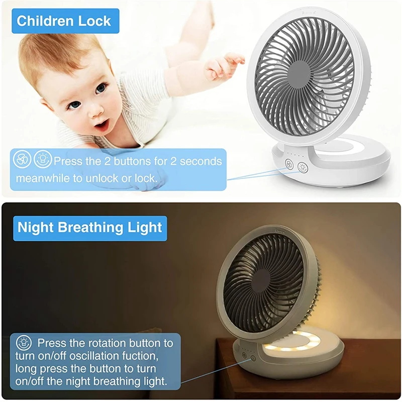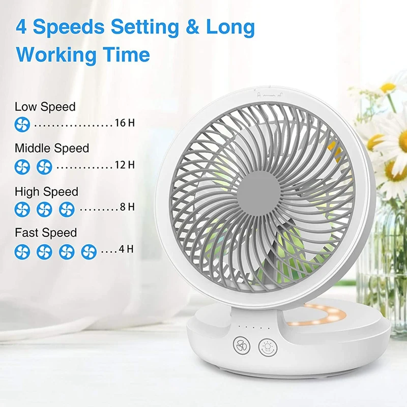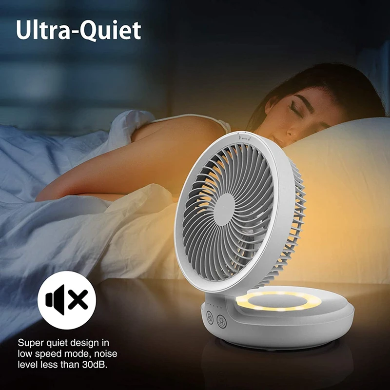 1. [4 Speeds Strong Airflow & Night light] Portable USB desk fan designed with 4 speeds setting and strong airflow, you can choose a suitable model to enjoy the cooling wind. It is not only a desk fan but also a night light which can be used in the bedroom before sleeping. (Notice: The night light is blinking like breathing when turn on.)