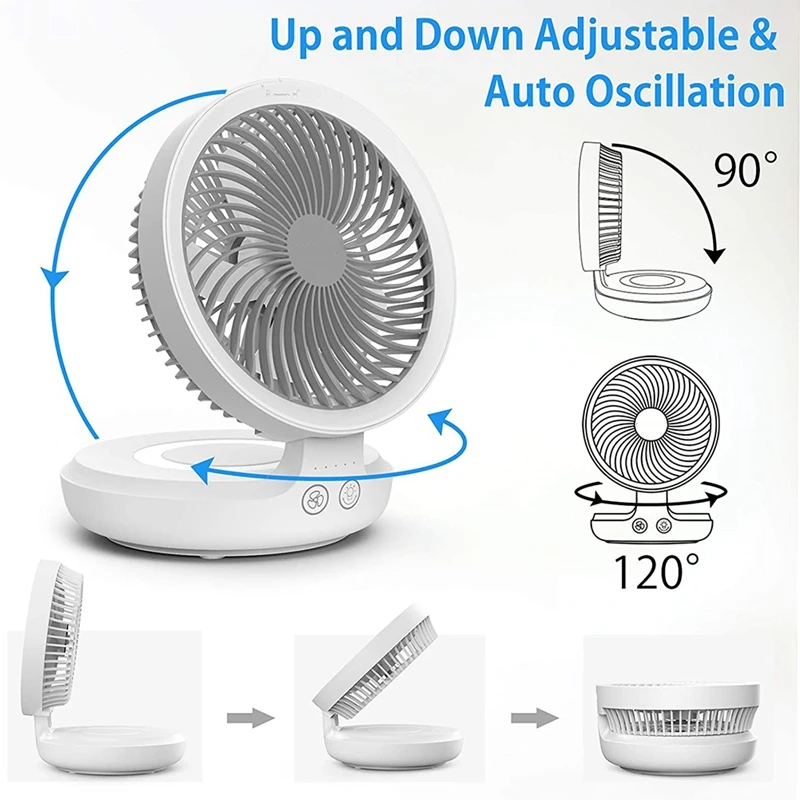 2. [Foldable Table Fan & Easy to Clean] USB table fan is able to adjust from 0 to 90 degrees to direct the airflow to where you want. The foldable desk fan can help you save space when you do not use it for a long time. The front cover of the desk fan is removable and easy to clean the fan blades.