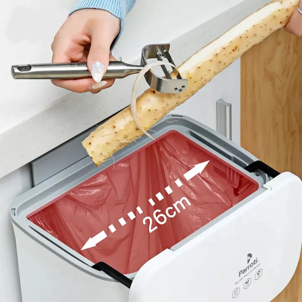 5. Convenient To Use: The cover has a special slide-type cover that only needs to be gently pulled down to complete the cover, then the lid can stay open. When you cook fresh food, slice, and dice things, you don't need to open and close the cabinet doors constantly with your wet hands, compared to the trash bin under the sink.