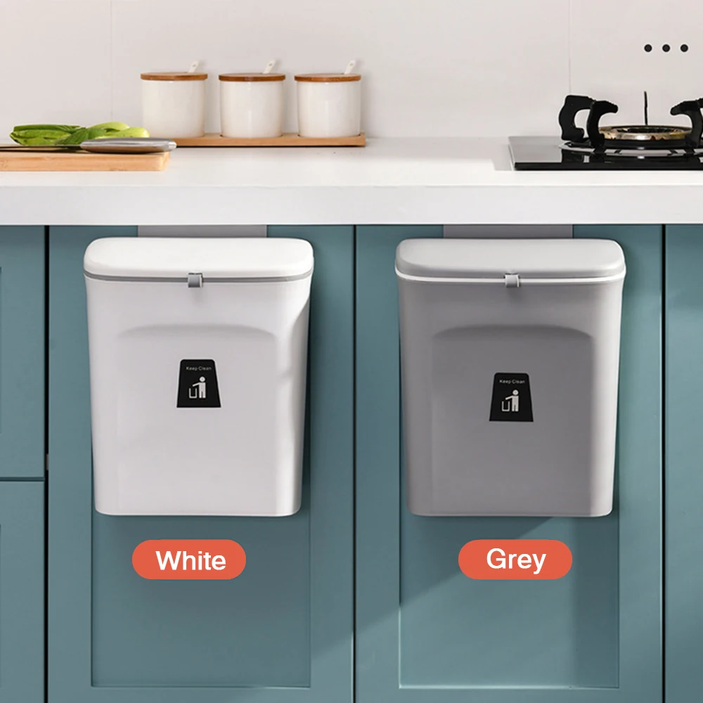 Kitchen Trash Can 7L/9L Wall Mounted Waste Bin With Lid Kitchen Garbage Cans Hanging Trash Bin for Car Rubbish Bin