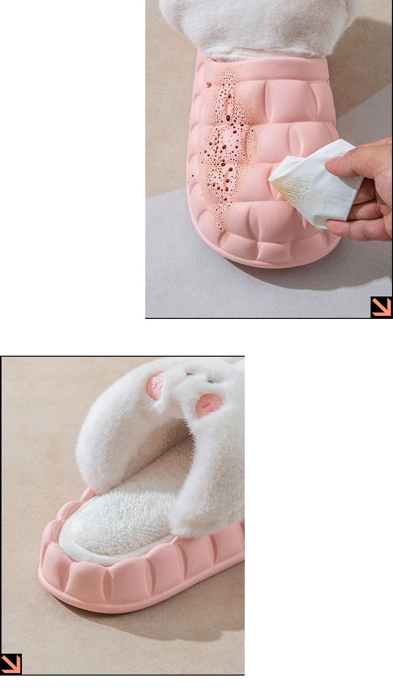 1. Detachable Fuzzy Slippers: The plush insole can be removed separately for cleaning, saving time and effort! Waterproof EVA upper, resistant to dirt, and easy to clean. Heart-warming color matching easily catches your eye!