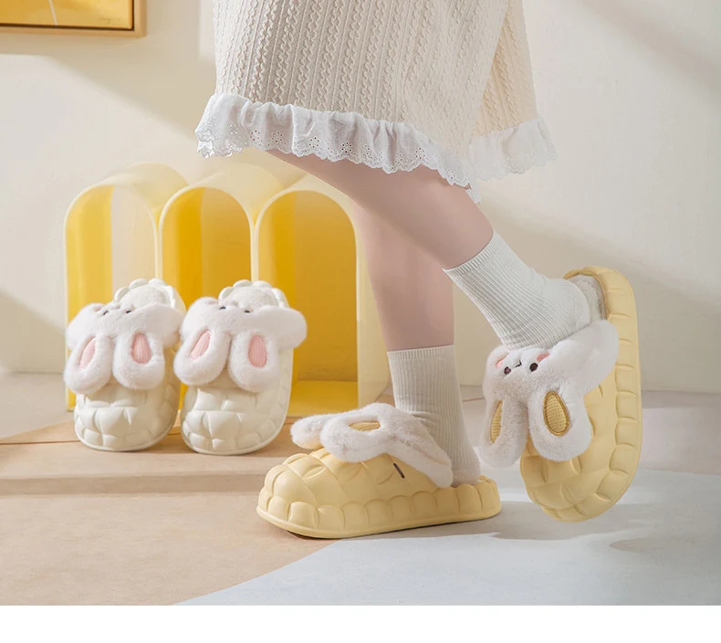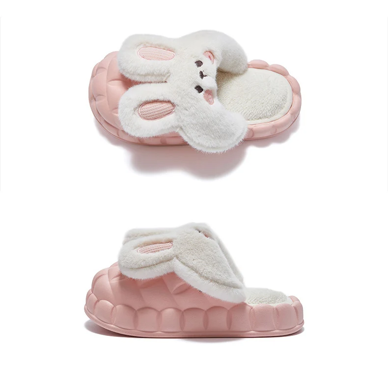 2022 Winter Cute Cartoon Rabbit Shape Couple's Home Slippers Warm Plush Lining Women's Shoes Comfortable Men's Slippers