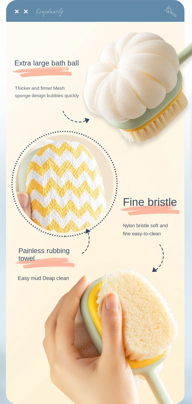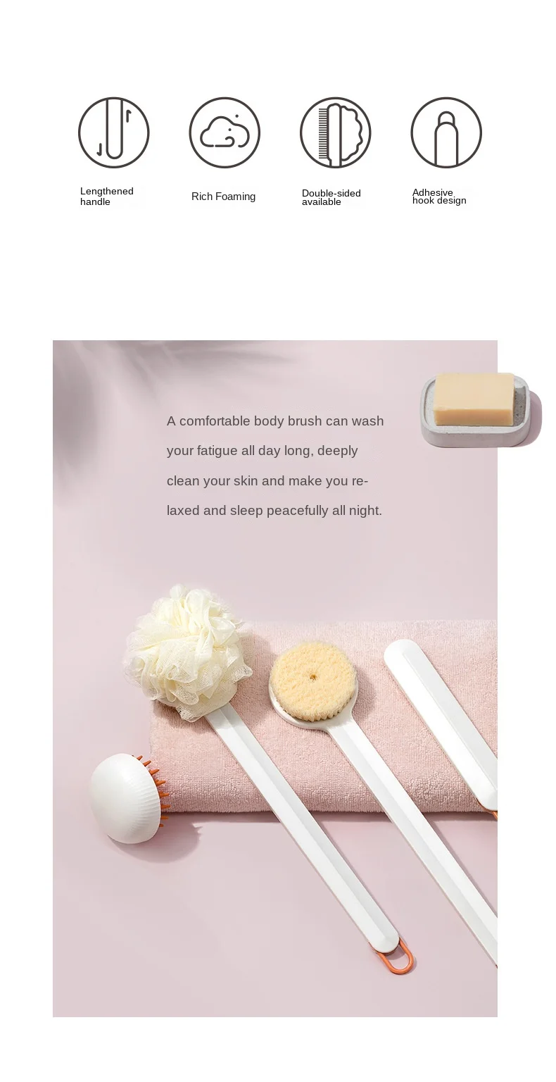 4. Extended Handle: Fit the back, easy to wash and brush the shoulders, back, waist, etc.
