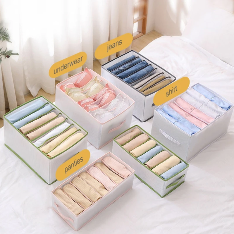 Cotton Linen Folding Clothes Storage Box Bra Underwear Organizer Wardrobe Separation Basket Divider Boxes Organizer