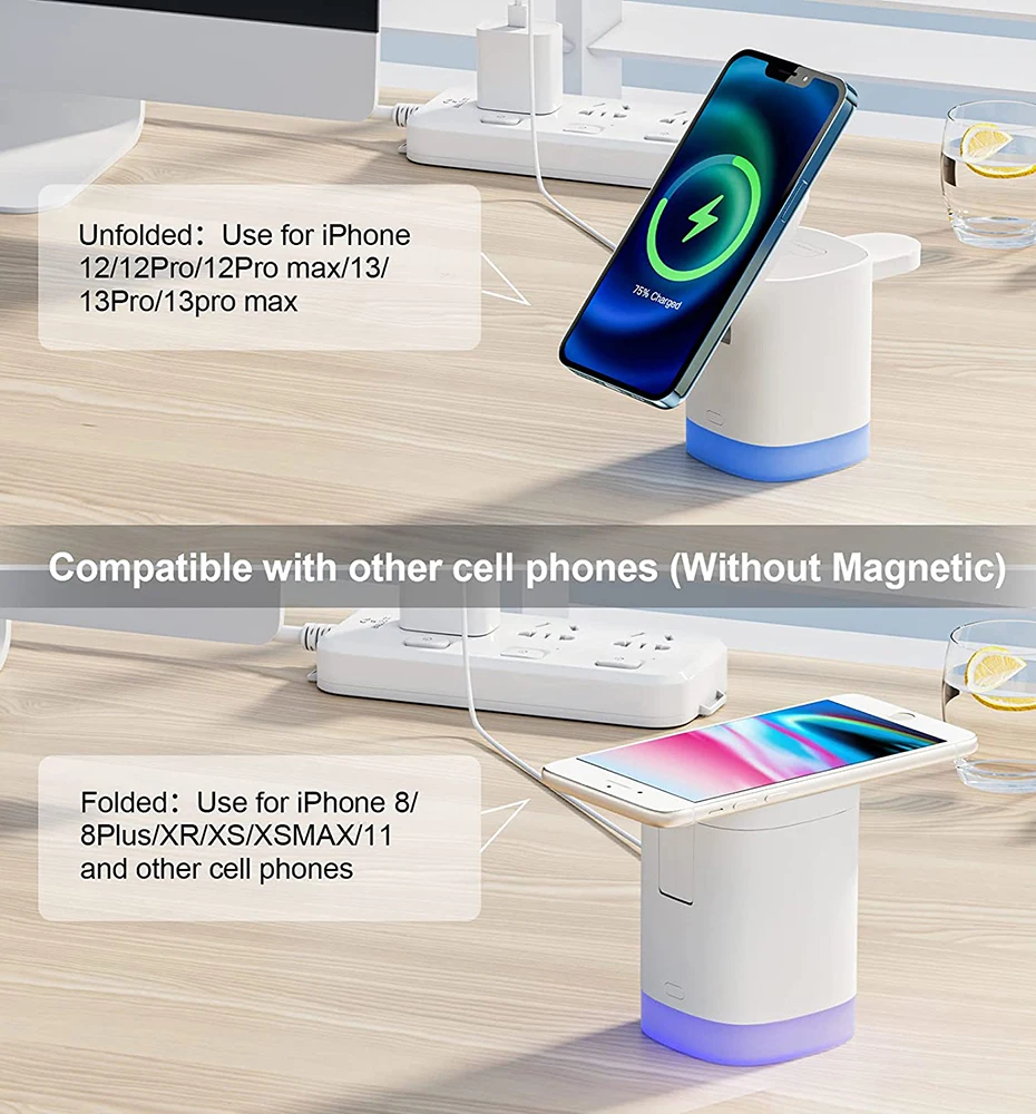 2. MAGNETIC FUNCTION: Magnetic Charger for iPhone 14/14 Plus/14 Pro/14 Pro max/13 Mini/13/13 Pro/13 Pro Max/12 Mini/12/12 Pro/12 Pro Max can be magnetically charged in the wireless charger unfolded state. Other series can be charged by placing them flat in the charging area in the folded position. (๐๐ค๐ฉ๐๏ผ๐๐ก๐๐๐จ๐ ๐๐ ๐จ๐ช๐ง๐ ๐ฉ๐ค ๐ง๐๐ข๐ค๐ซ๐ ๐ฉ๐๐ ๐๐๐ค๐ฃ๐ ๐พ๐๐จ๐ ๐ฌ๐๐๐ฃ ๐๐๐๐ง๐๐๐ฃ๐, ๐ค๐ฉ๐๐๐ง๐ฌ๐๐จ๐ ๐๐ฉ ๐ฌ๐๐ก๐ก ๐๐๐๐๐๐ฉ ๐ฉ๐๐ ๐๐๐๐ง๐๐๐ฃ๐ ๐๐ช๐ฃ๐๐ฉ๐๐ค๐ฃ๏ผ